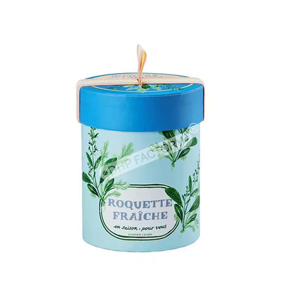 Cylinder Rigid Paper Tube With Ribbon Pull Lid Custom Flat Edge Box For Candle Storage